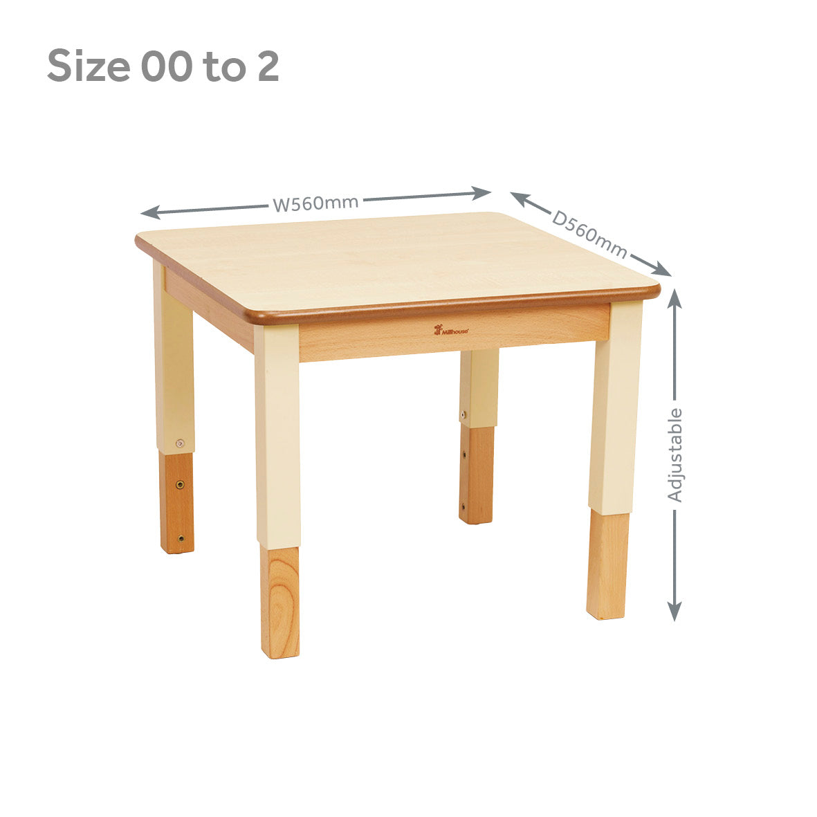 Millhouse adjustable wooden tables offer complete versatility within rooms. The adjustable wooden legs have a steel frame that provides four height settings to accommodate children aged 1 to 6 years. The maple melamine top is easy to clean and rounded corners/edges help prevent. Delivered part assembled (legs are secured to tabletop using the Allen key supplied).